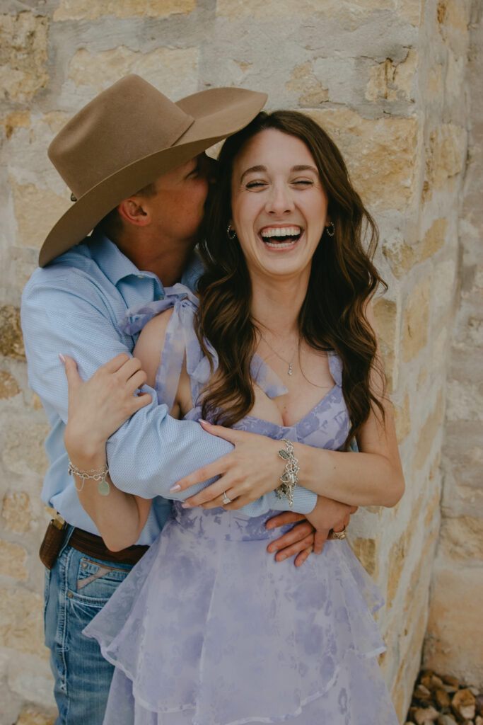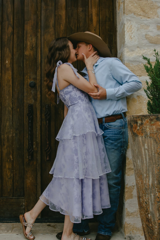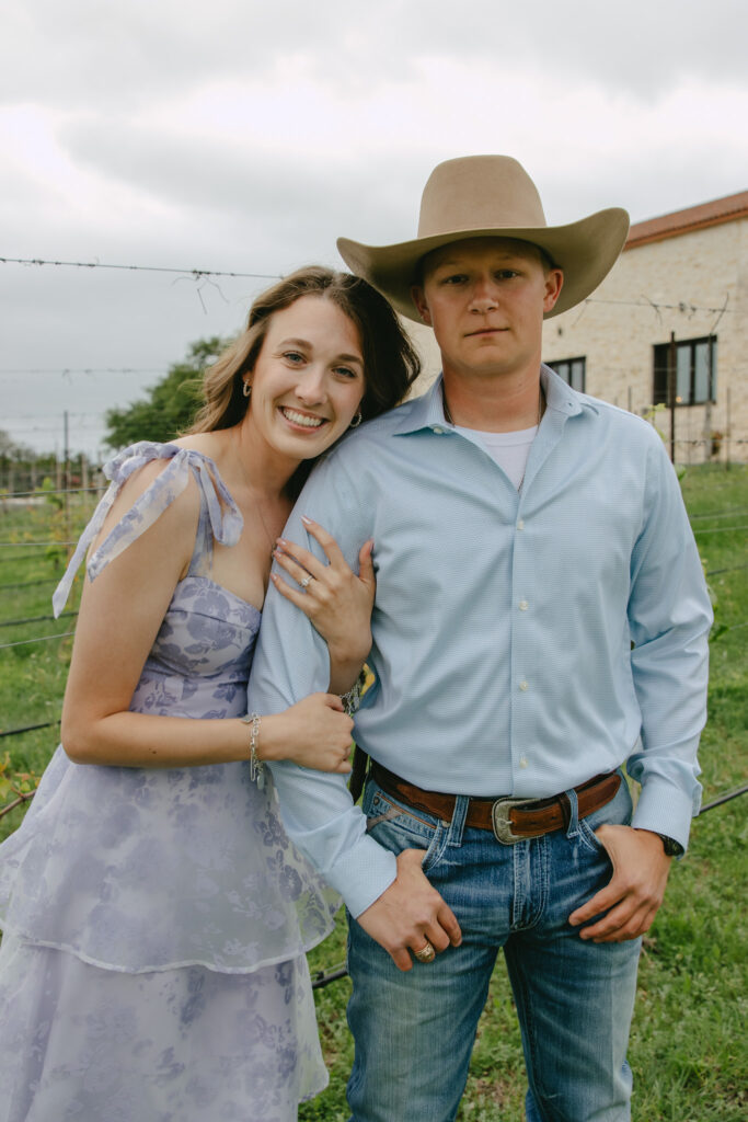 From the moment they arrived, these two couldn’t stop smiling. The bride-to-be looked stunning in a lavender tiered dress that added the perfect soft, romantic touch to the photos, a color that popped beautifully against the greenery. Her fiancé kept things classic with jeans, boots, and a cowboy hat (a total Texas power move 🤠).