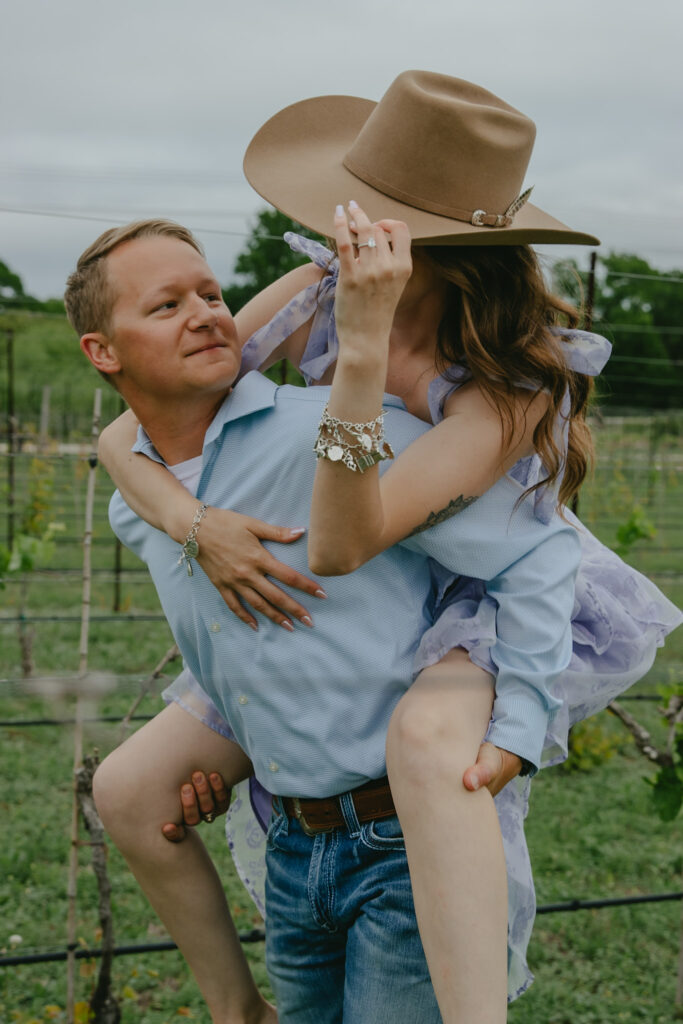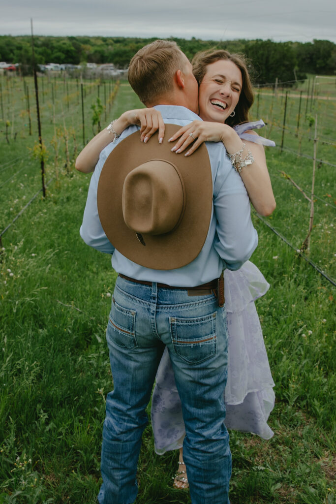 We explored the property, danced through the rows, and leaned into those in-between moments, the laughter, the gentle touches, the way she looked up at him under that big Hill Country sky.